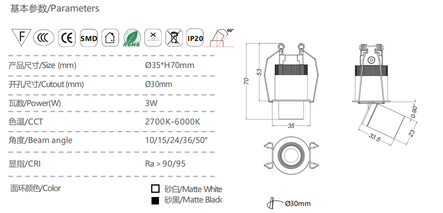 嵌入式筒射灯