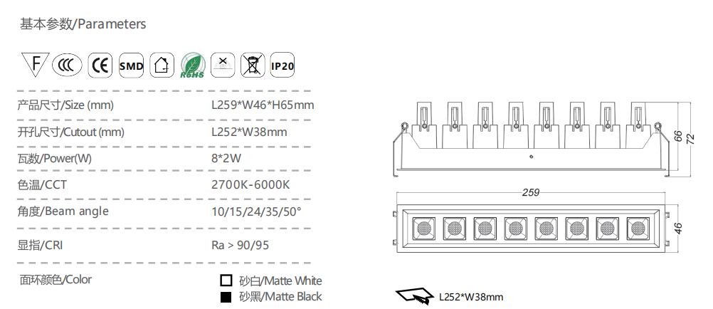 条形格栅射灯
